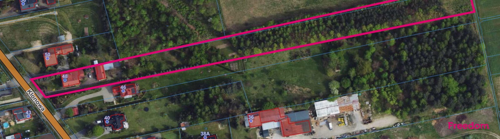 - Kształt działki: Prostokąt