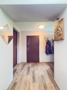 - Podłogi w pomieszczeniach: Panele