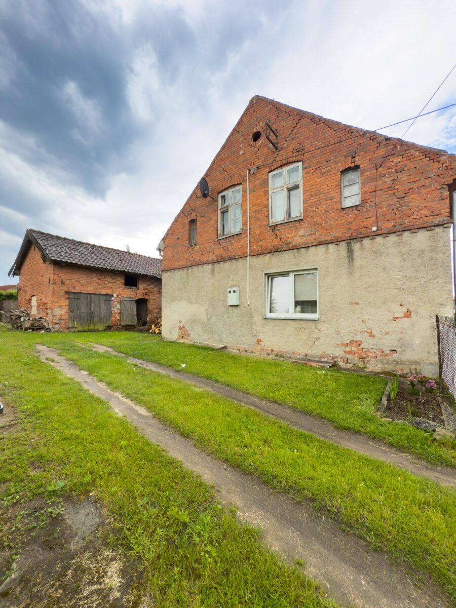 - Zabudowania: dom mieszkalny z 1938 r. z czerwonej cegły + budynek gospodarczy