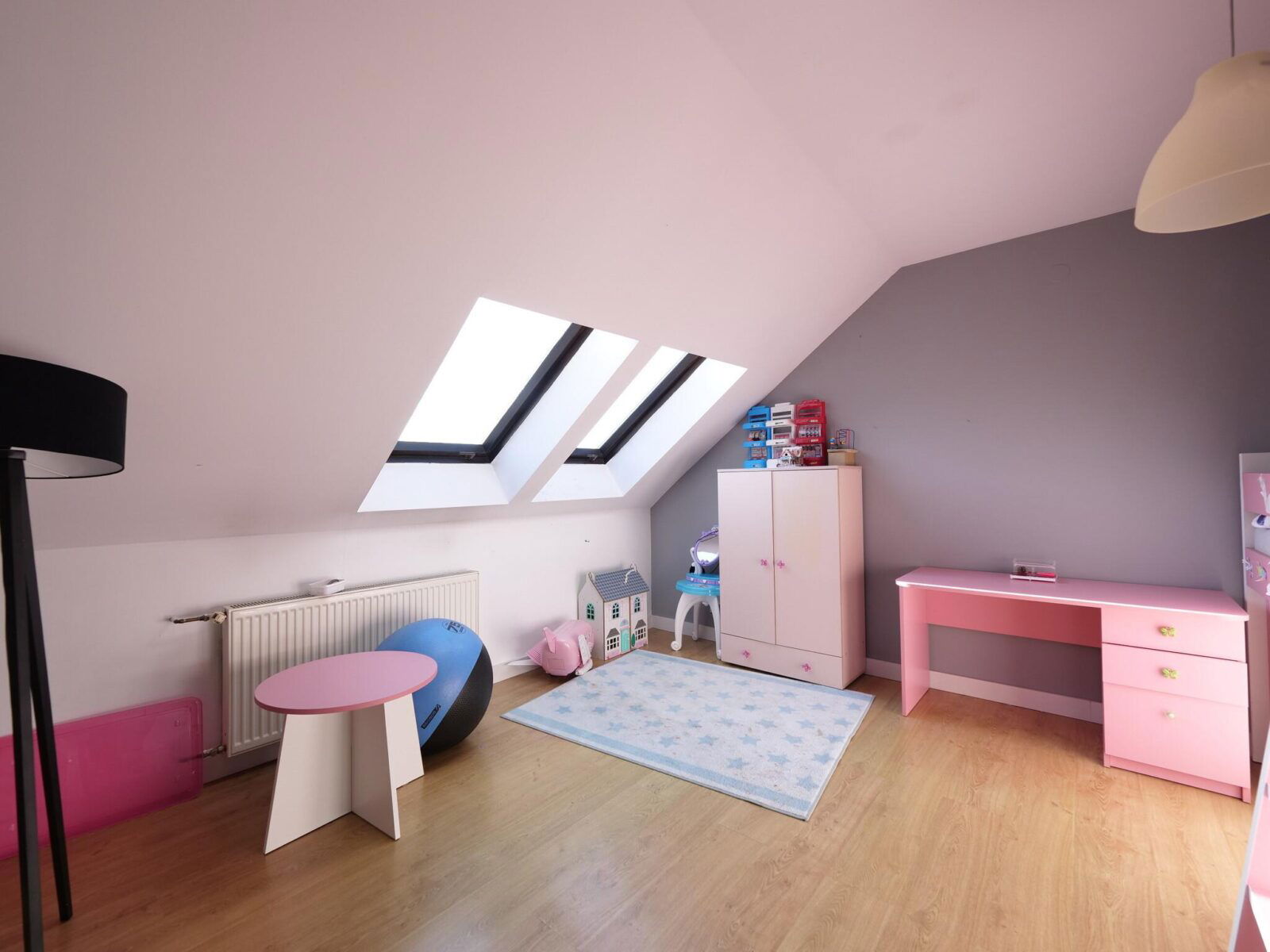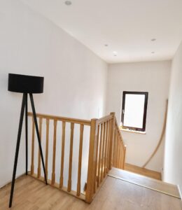 Dom ma 6 pokoi, w tym przestronny salon oraz sypialnie. Na parterze znajduje się sala ćwiczeń z recepcją i łazienką, a na piętrze duży pokój kąpielowy.