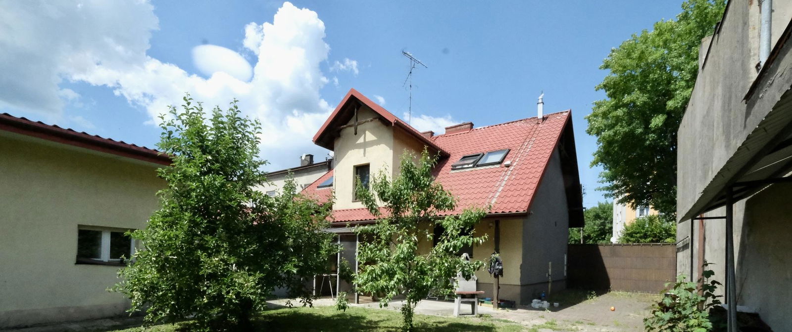 Dom na działce 0,0985, dodatkowo budynek gospodarczy, cała działka w pełni uzbrojona z przeznaczeniem zabudowy mieszkalnej jednorodzinnej z dopuszczeniem zabudowy usługowej.