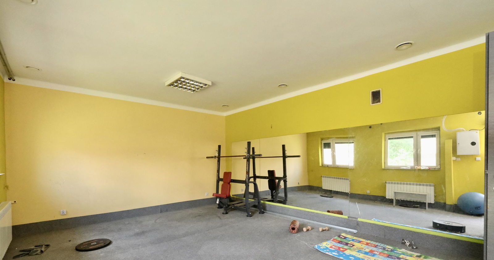 Parter został przystosowany pod sale ćwiczeń z recepcją i łazienką. Dodatkowo pralnia i pomieszczenie z kominkiem.