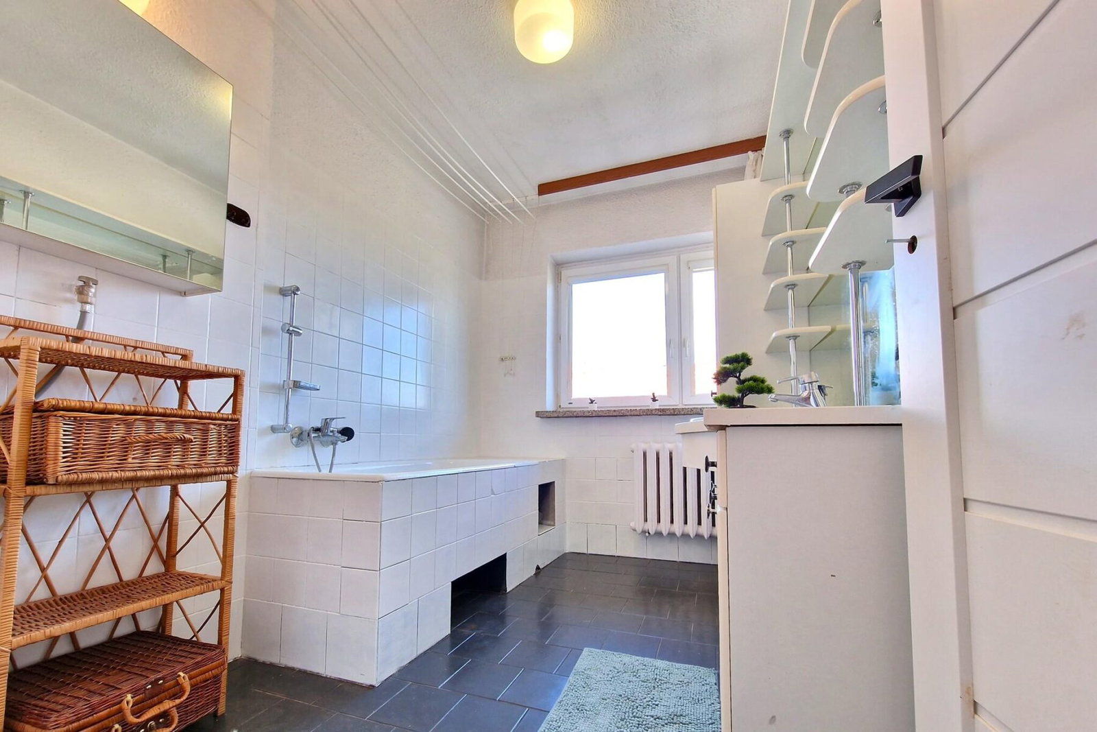 - Podłogi w pomieszczeniach: Płytki, Deska podłogowa