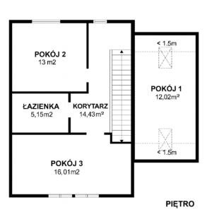Dom składa się z salonu z aneksem kuchennym, trzech pokoi oraz dwóch łazienek. Dodatkowo znajduje się użytkowe poddasze z oknami dachowymi, które można wykorzystać jako sypialnię, gabinet lub pokój dla dzieci.