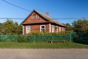 Dom o powierzchni 93 m2, umiejscowiony jest na obszernej działce wielkości prawie 7400 m2. Budynek wzniesiono w latach 50-tych, posiada dobrze zachowaną konstrukcję (drewniane bele oraz krokwie w dobrym stanie). Podłogi wyłożone są deską podłogową. .