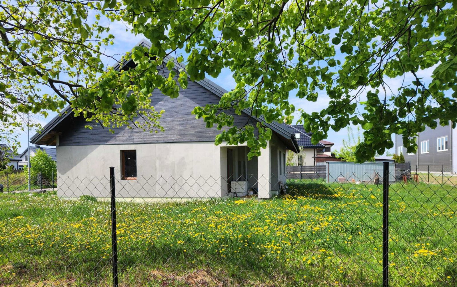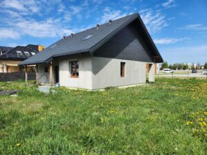 Dom jest w stanie surowym zamkniętym, co oznacza, że wymaga dalszych prac wykończeniowych i aranżacyjnych. Ocieplenie oraz elewacja są już wykonane, a okna są trzyszybowe.