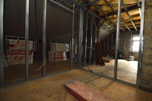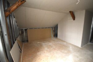 Budynek mieszkalny o powierzchni około 250 m² jest częściowo wyremontowany, z nowymi wylewkami, instalacjami elektrycznymi, wodno-kanalizacyjnymi oraz gazowymi. Wymienione zostały również okna i ocieplenie budynku, a dach został pokryty nowym poszyciem.