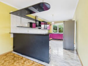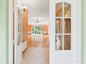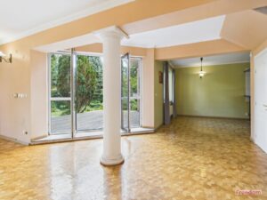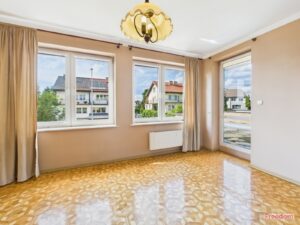 Dom wymaga odświeżenia, co daje nowemu właścicielowi możliwość dostosowania przestrzeni do własnych potrzeb. Warto zwrócić uwagę na eleganckie detale, takie jak drewniana mozaika i marmurowe schody, które podnoszą prestiż wnętrza.