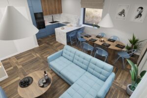 - Salon z aneksem kuchennym - 31,14 m²