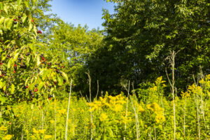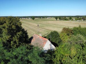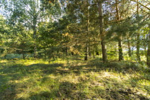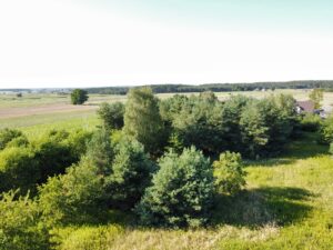 Oferowana nieruchomość to duża, malownicza działka z dostępem do drogi asfaltowej. Teren jest częściowo ogrodzony, płaski i nasłoneczniony, otoczony polami i łąkami. Znajduje się tu bór sosnowy, prywatna polanka oraz liczne nasadzenia, w tym urokliwa czeremcha. Na terenie działki znajduje się również studnia.