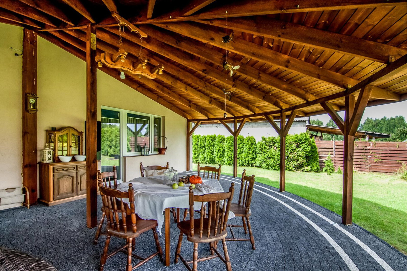 Dom o powierzchni użytkowej 165 m², rozbudowany w 2006 roku, to przestronna parterówka gotowa do zamieszkania.