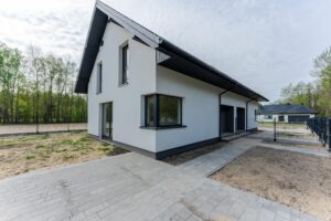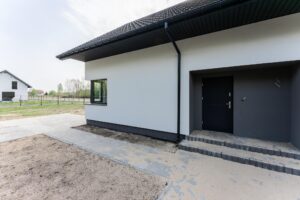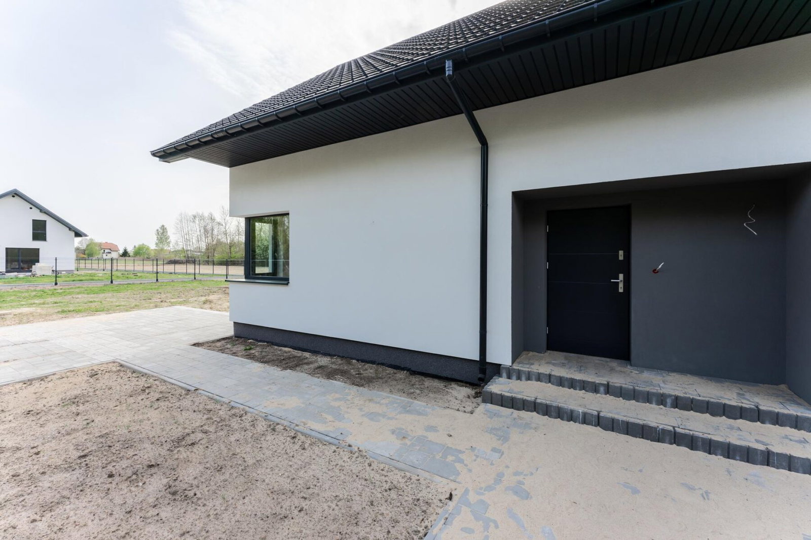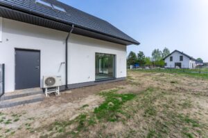 Dodatkowym udogodnieniem jest instalacja pod klimatyzację w każdej sypialni osobno. Przewody miedziane, zasilanie oraz odpływ skroplin zostały elegancko wprowadzone pod elewacją, co sprawia, że dom jest przygotowany na najwyższy komfort życia.