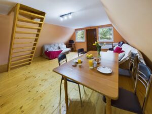 Wnętrze domu jest starannie wykończone i funkcjonalnie zaprojektowane - przestrzeń , która spełni oczekiwania zarówno właścicieli jak i gości wynajmujących.