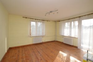 Dom jest w stanie do wykończenia, co daje możliwość dostosowania go do własnych potrzeb. Budynek został wybudowany w technologii tradycyjnej z białej cegły, a okna wymieniono na nowe PCV.