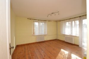 Dom składa się z dwóch niezależnych mieszkań, każde o powierzchni około 60 m². W sumie mamy 6 pokoi, co daje dużą elastyczność w aranżacji przestrzeni. Wejście do mieszkań prowadzi z klatki schodowej.