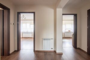 - Podłogi w pomieszczeniach: Mieszane