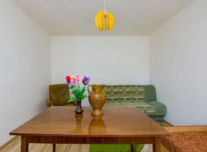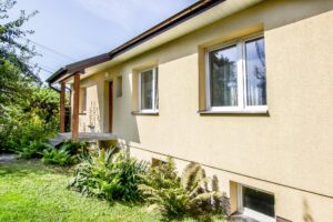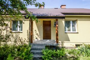 Dom na powierzchni użytkowej 67 m² (z opcją powiększenia metrażu) mieści dwa duże pokoje, przestronną kuchnię oraz łazienkę z prysznicem. Wnętrze jest jasne, zadbane i gotowe do zamieszkania – wymaga jedynie odświeżenia. Dwa wejścia pozwalają wygodnie korzystać z budynku lub wydzielić dodatkową część mieszkalną.