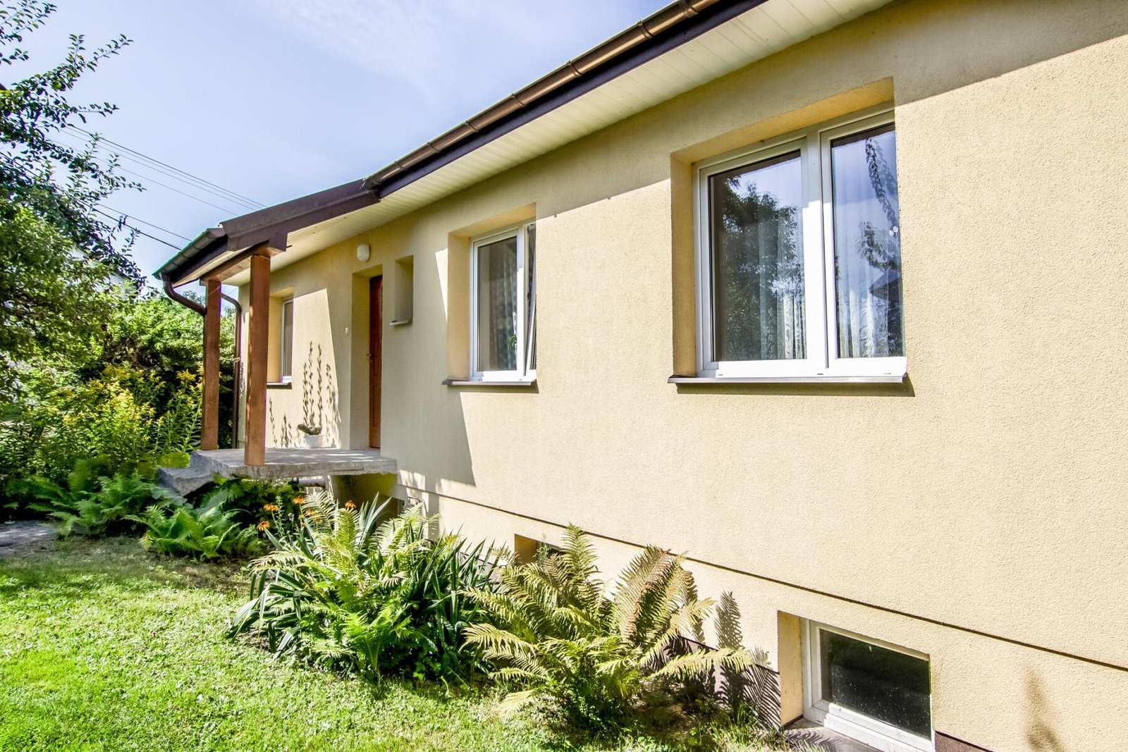 Dom jest murowany, zadbany i w dobrym stanie technicznym. Wnętrze jest jasne i gotowe do zamieszkania, wymaga jedynie odświeżenia. Dach jest pokryty blachą trapezową, a okna są plastikowe, co zapewnia dobrą izolację.