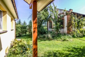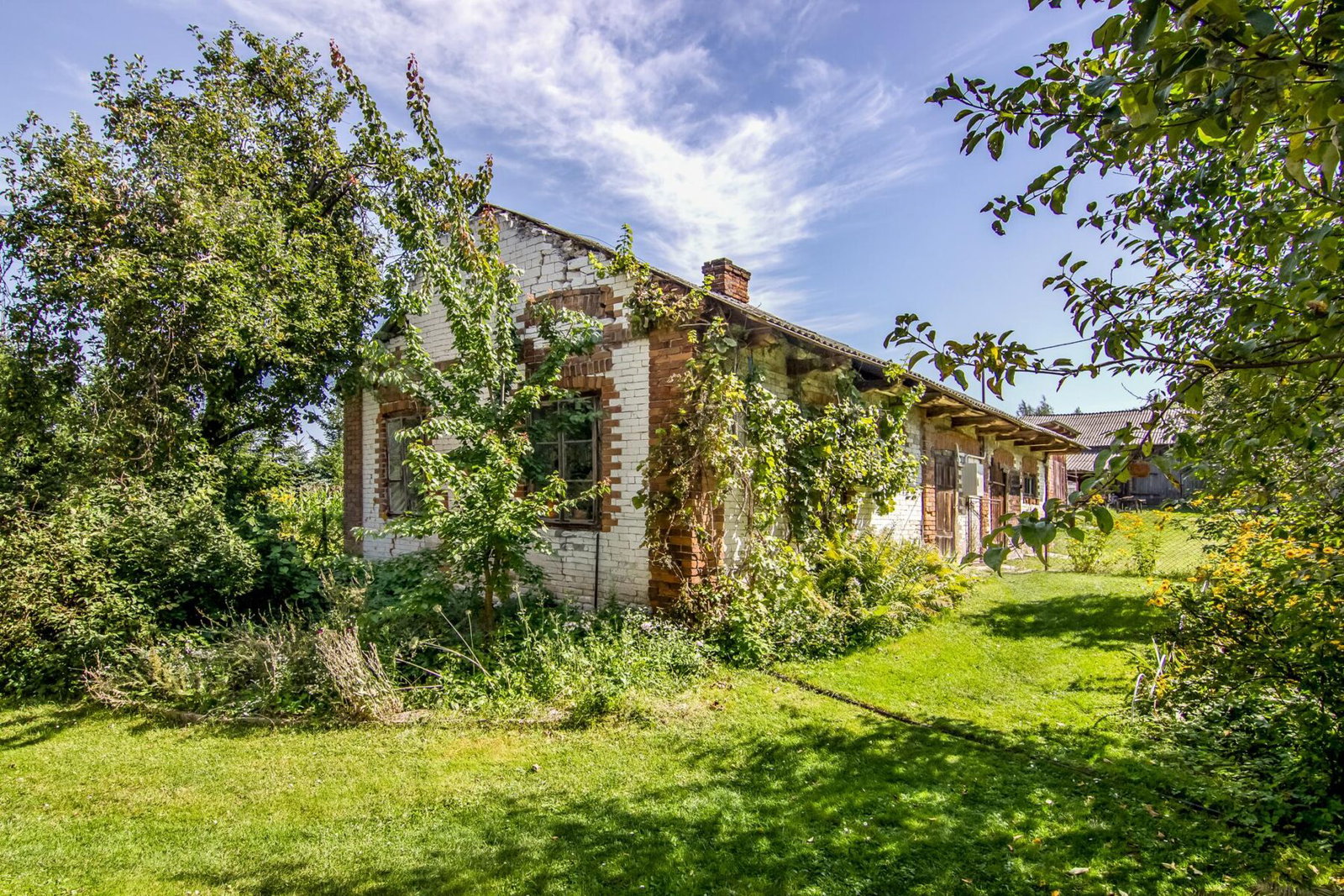 Na posesji znajduje się również budynek gospodarczy o powierzchni 40 m², który po renowacji może pełnić funkcję warsztatu lub pomieszczeń gospodarczych.