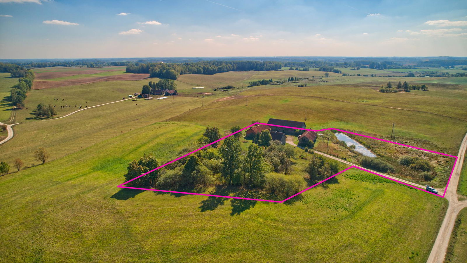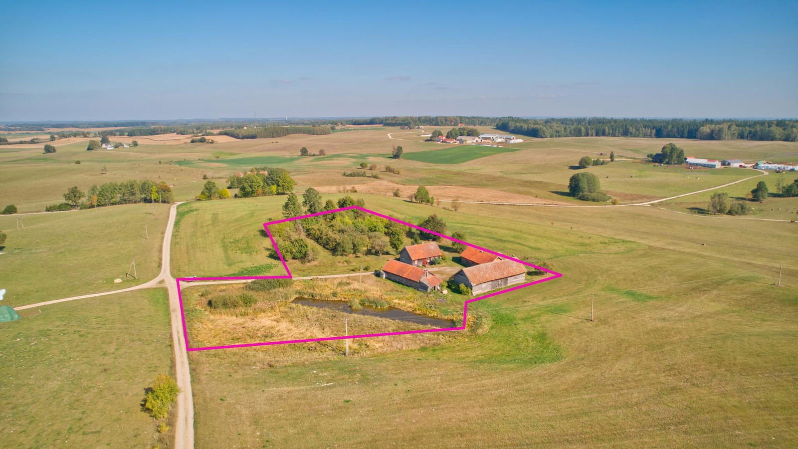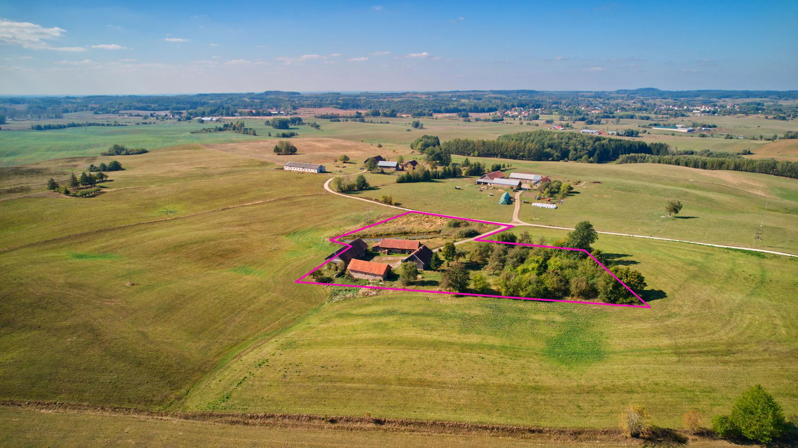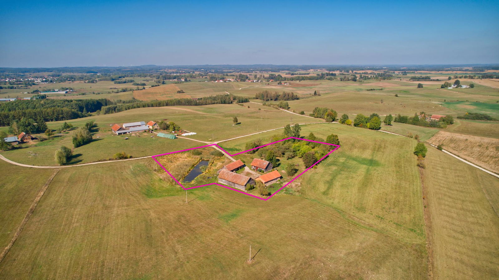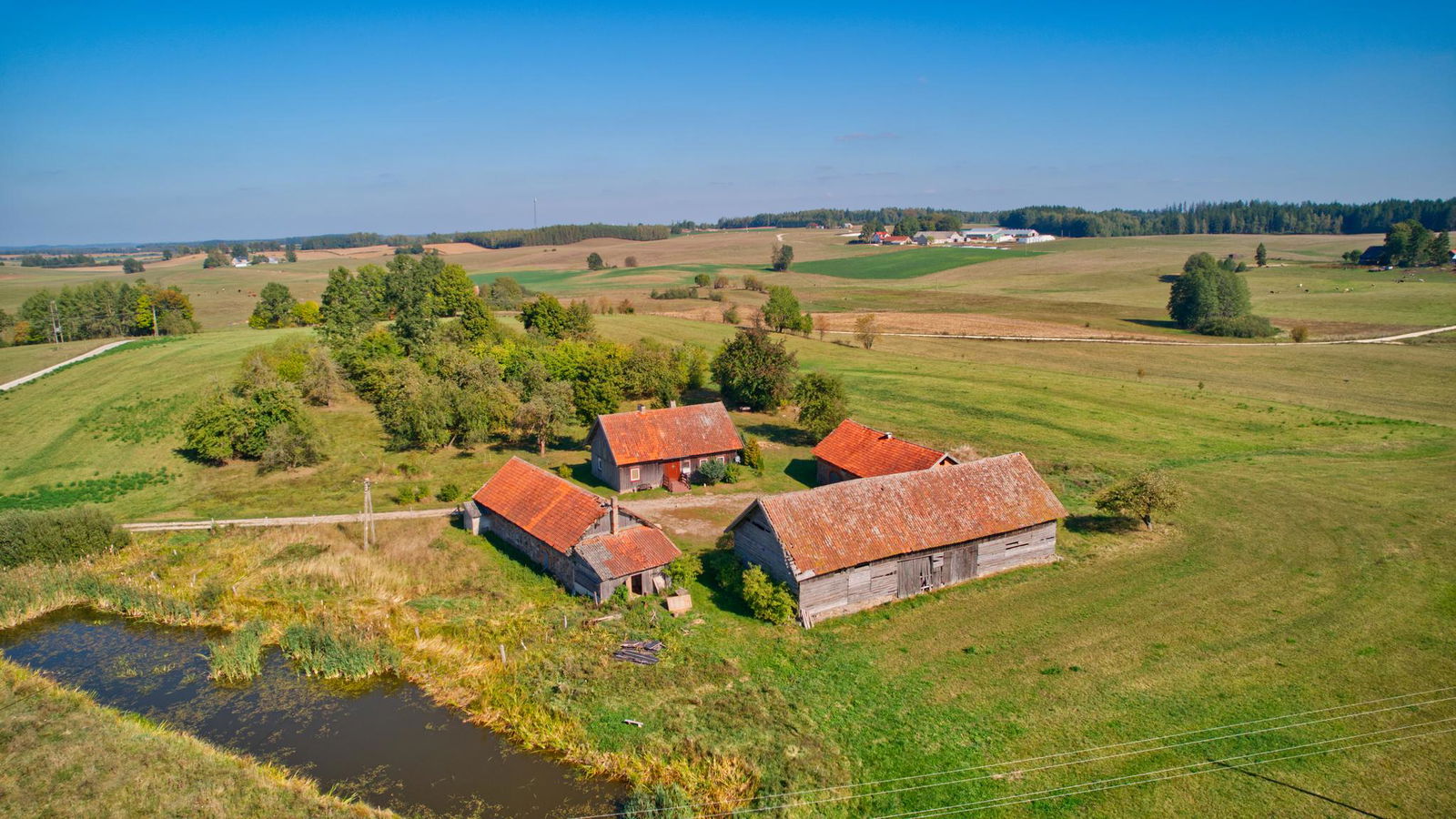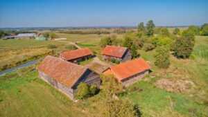 W skład nieruchomości wchodzi dom o powierzchni 106 m2, posadowiony na działce o pow. 1,22 ha. Do budynku mieszkalnego przynależą również trzy budynki gospodarcze, które mogą być użytkowane jako stodoła, obora, stajnia, warsztat czy inne pomieszczenia tego typu. Dom wraz z budynkami o konstrukcji drewnianej z dachem pokrytym dachówką.