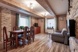 - 2 pokoje wymagające remontu (w tym jeden pokój przechodni),