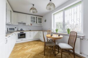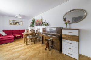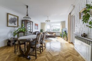- Podłogi w pomieszczeniach: Parkiet