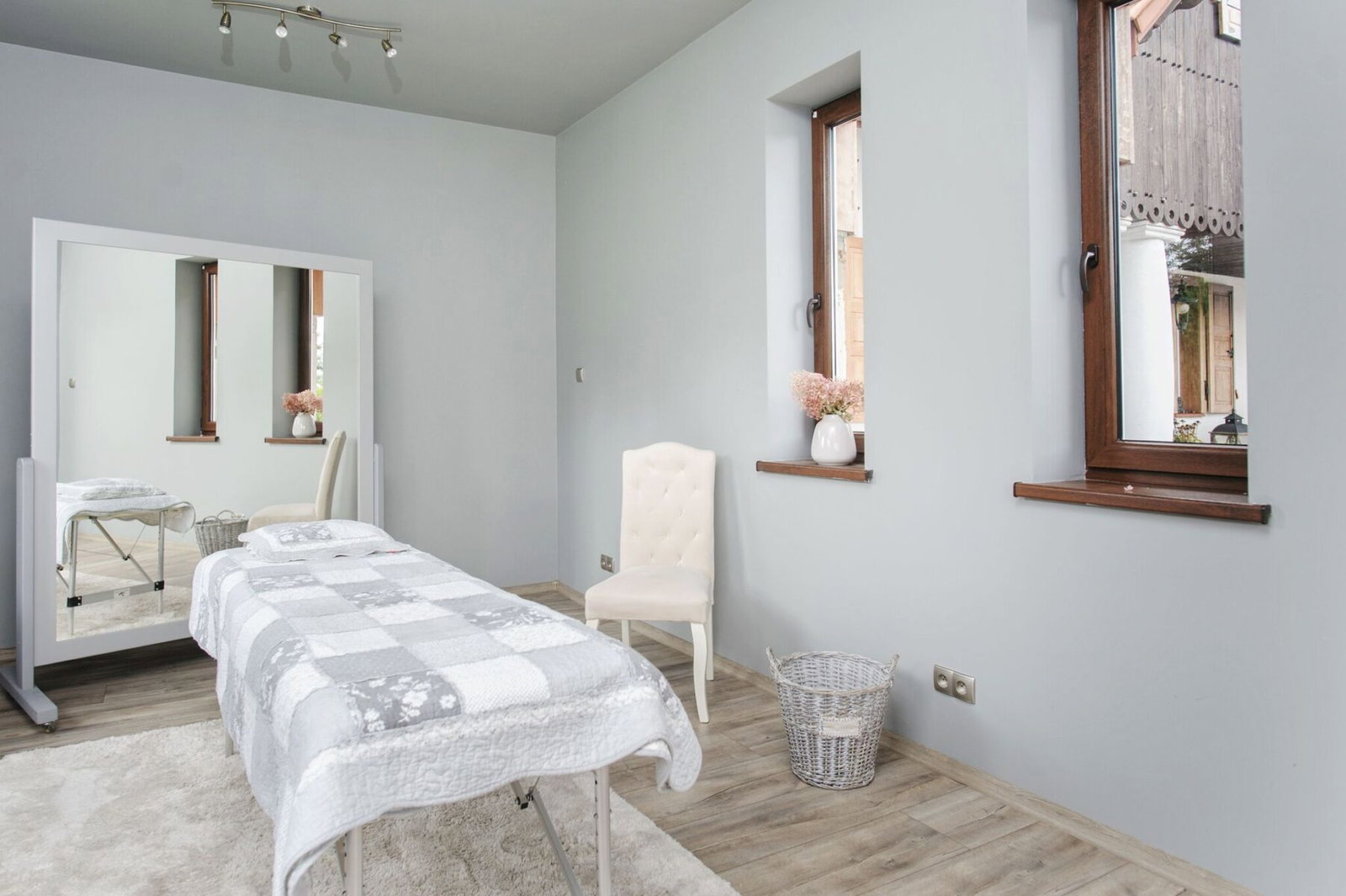 Dopełnieniem całości jest duży garaż o powierzchni około 135 m², mieszczący dwa samochody oraz przestronny warsztat. Pomieszczenie to może pełnić funkcję magazynu lub miejsca do prowadzenia działalności gospodarczej.