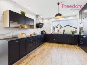 W domu pozostaje pełne wyposażenie kuchni, w tym zabudowa na wymiar oraz granitowy blat. Szczegóły dotyczące innych elementów wyposażenia dostępne po kontakcie.