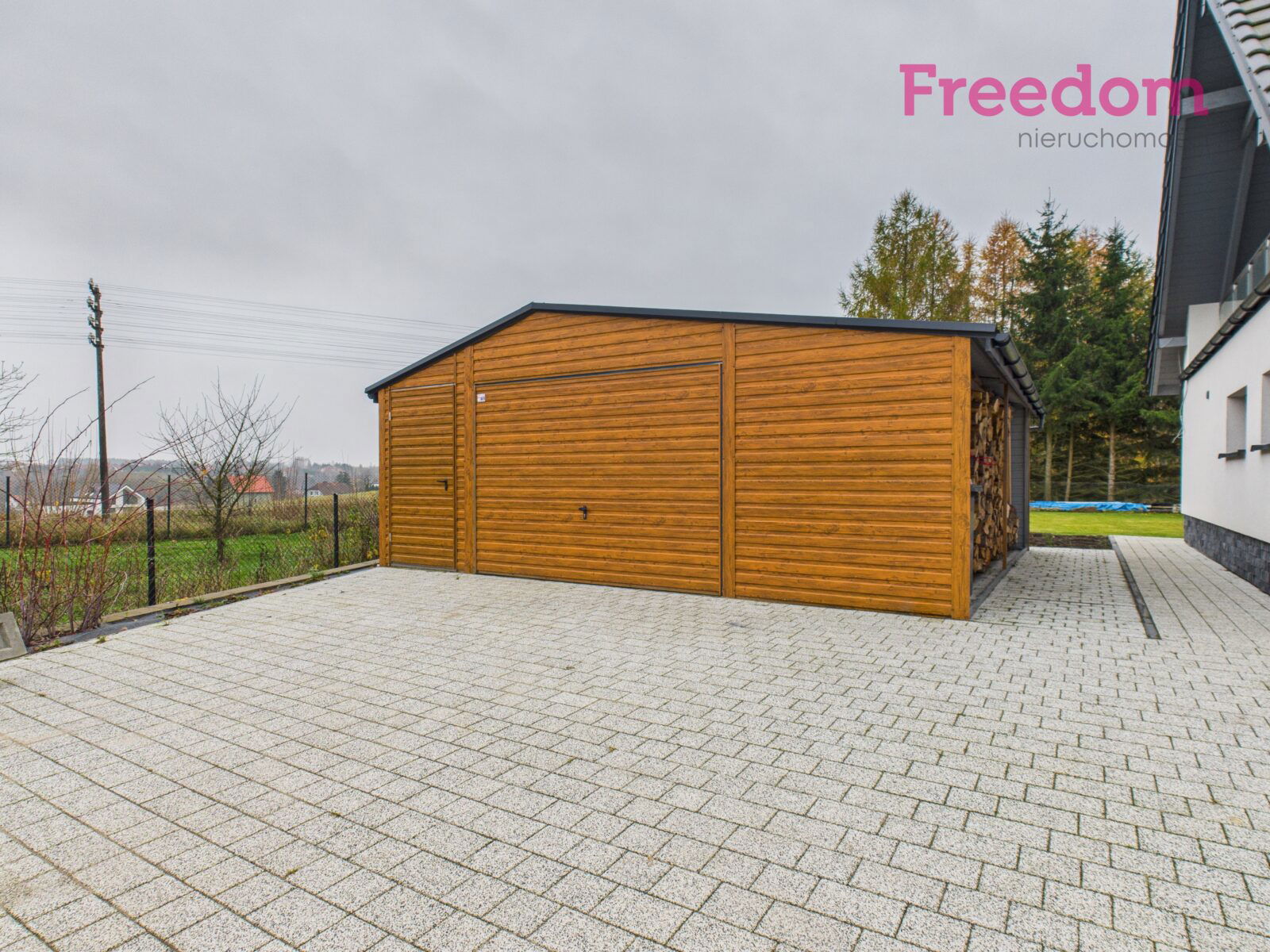 - budynek garażowo–gospodarczy 18 m² + wiata na drewno 9 m²