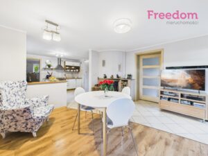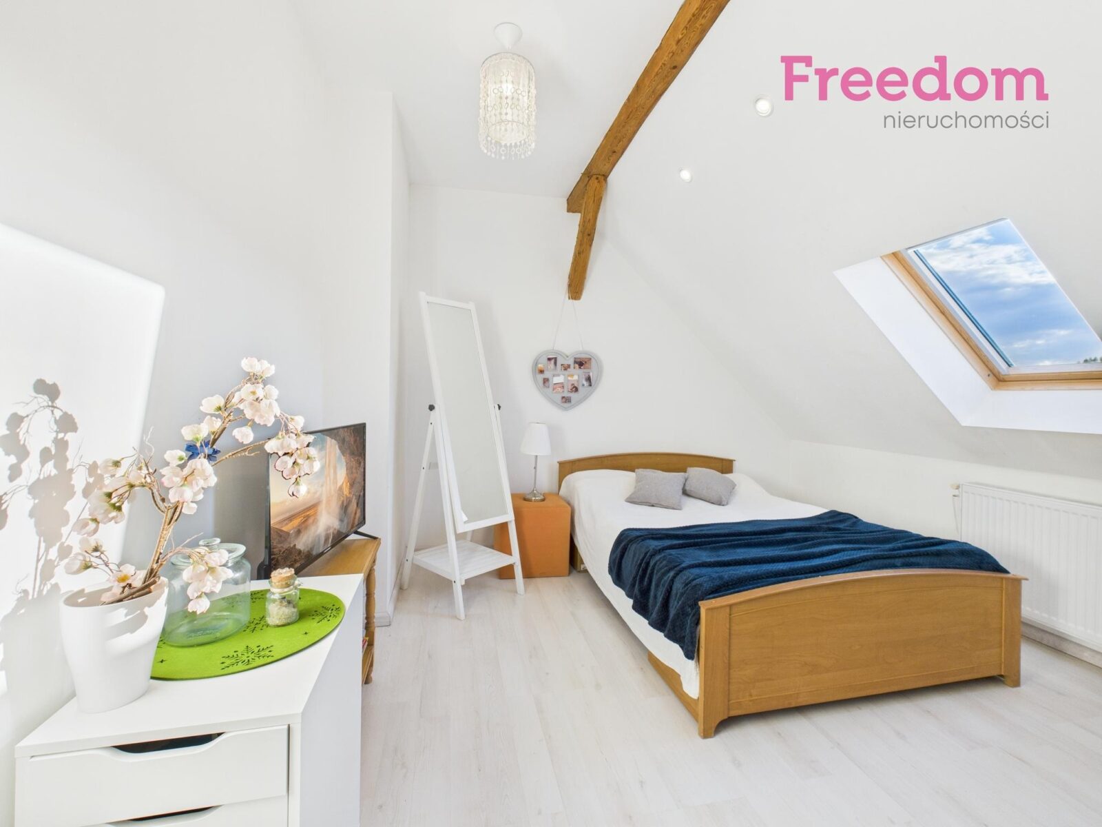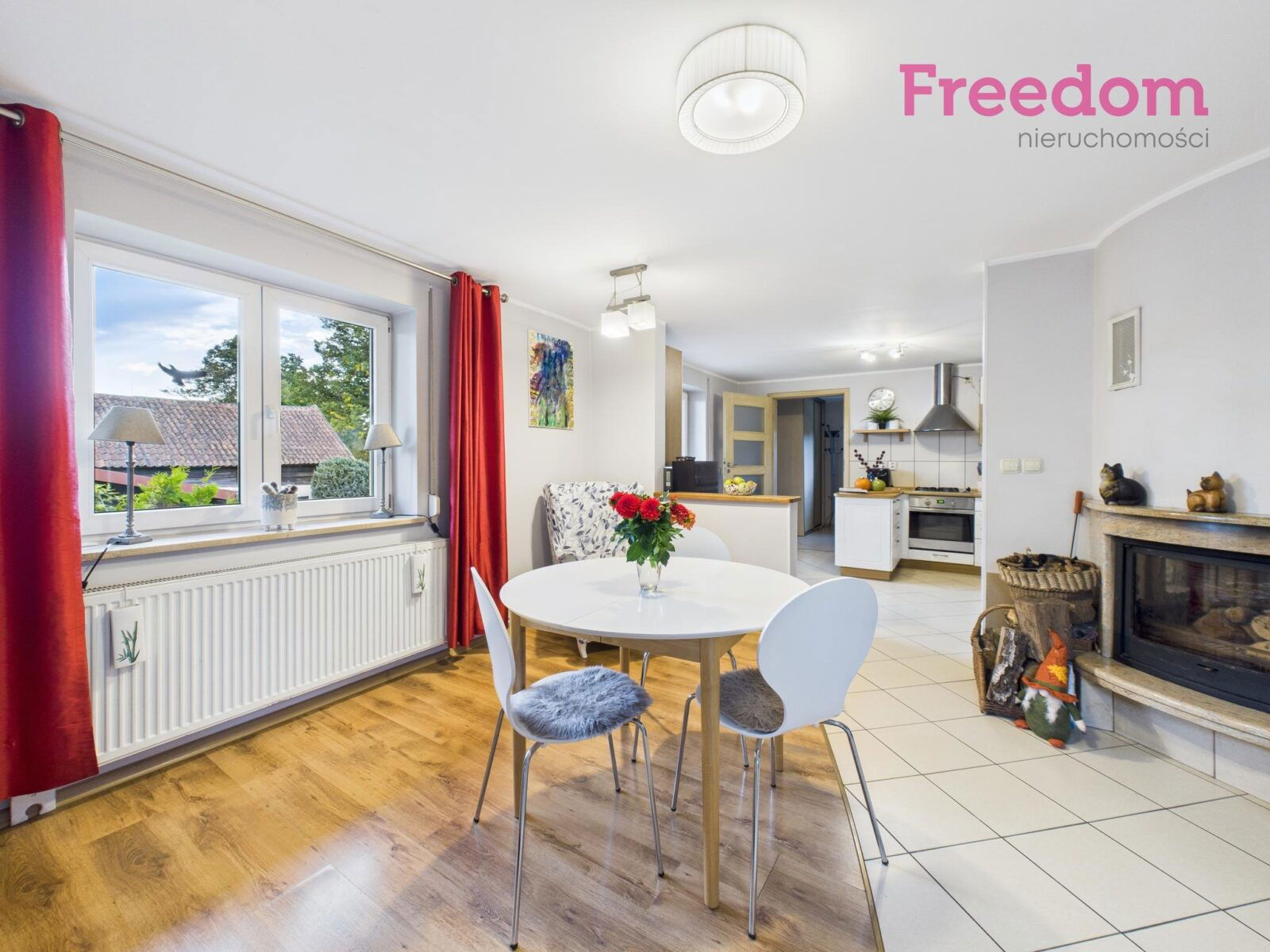 Dom ma funkcjonalny układ, składa się z pięciu pokoi, w tym przestronnego salonu z wyjściem na taras, dwóch sypialni na piętrze oraz dużej łazienki z prysznicem i wanną. Kuchnia jest otwarta na salon, co sprzyja wspólnemu spędzaniu czasu.