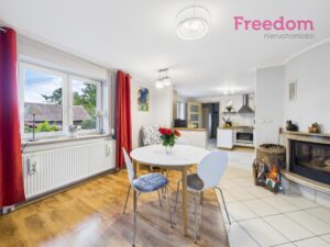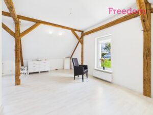Sercem domu bez wątpienia jest przestronny salon, doskonale doświetlony wraz z wyjściem na taras. Na parterze domu znajdują się dwa pokoje, duża łazienka z prysznicem i wanną oraz widna kuchnia otwarta na salon. Dom ogrzewany jest za pomocą pieca na ekogroszek oraz kominka z płaszczem wodnym. Na pierwszym piętrze znajdują się dwie oddzielne sypialnie, garderoba oraz pomieszczenie.