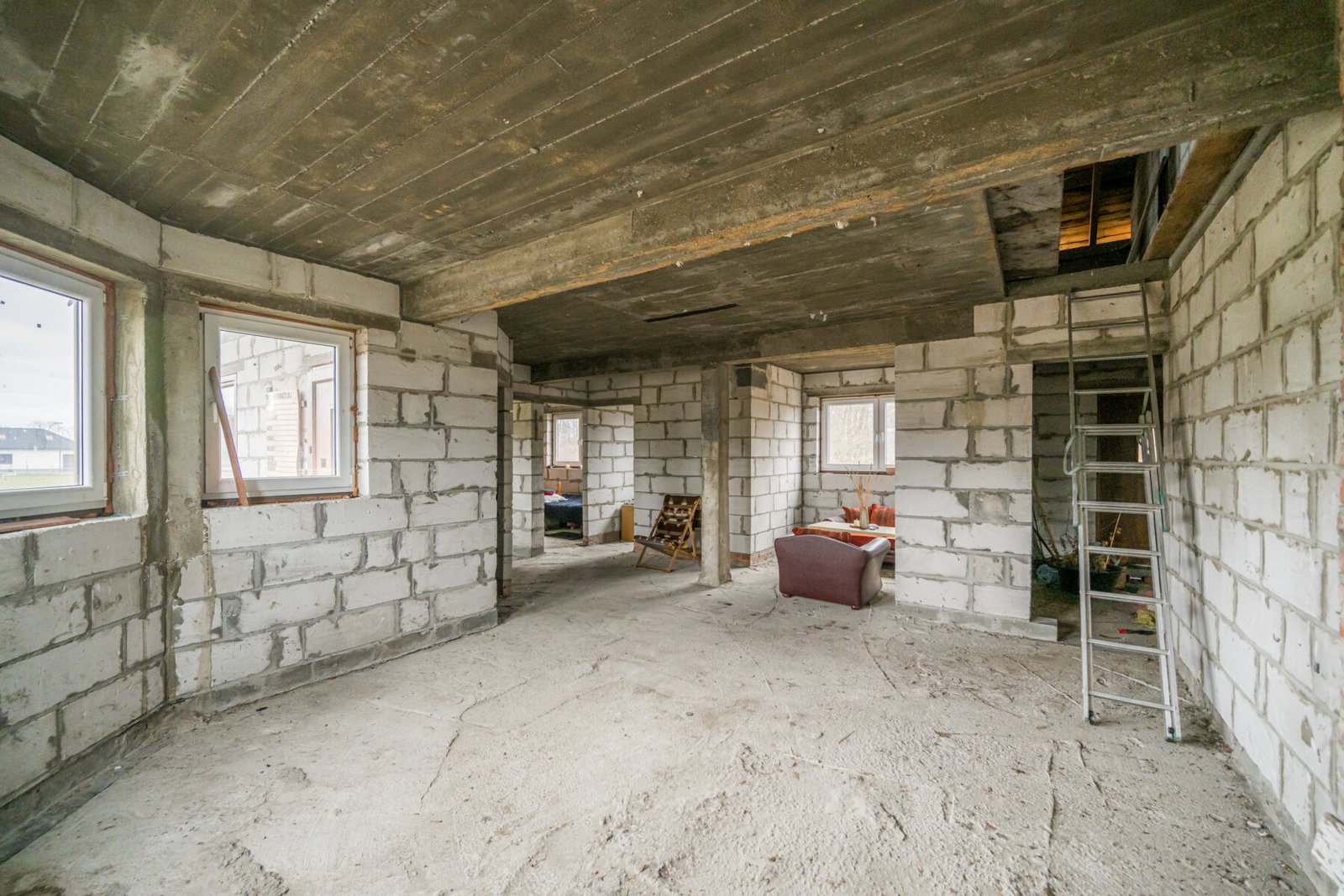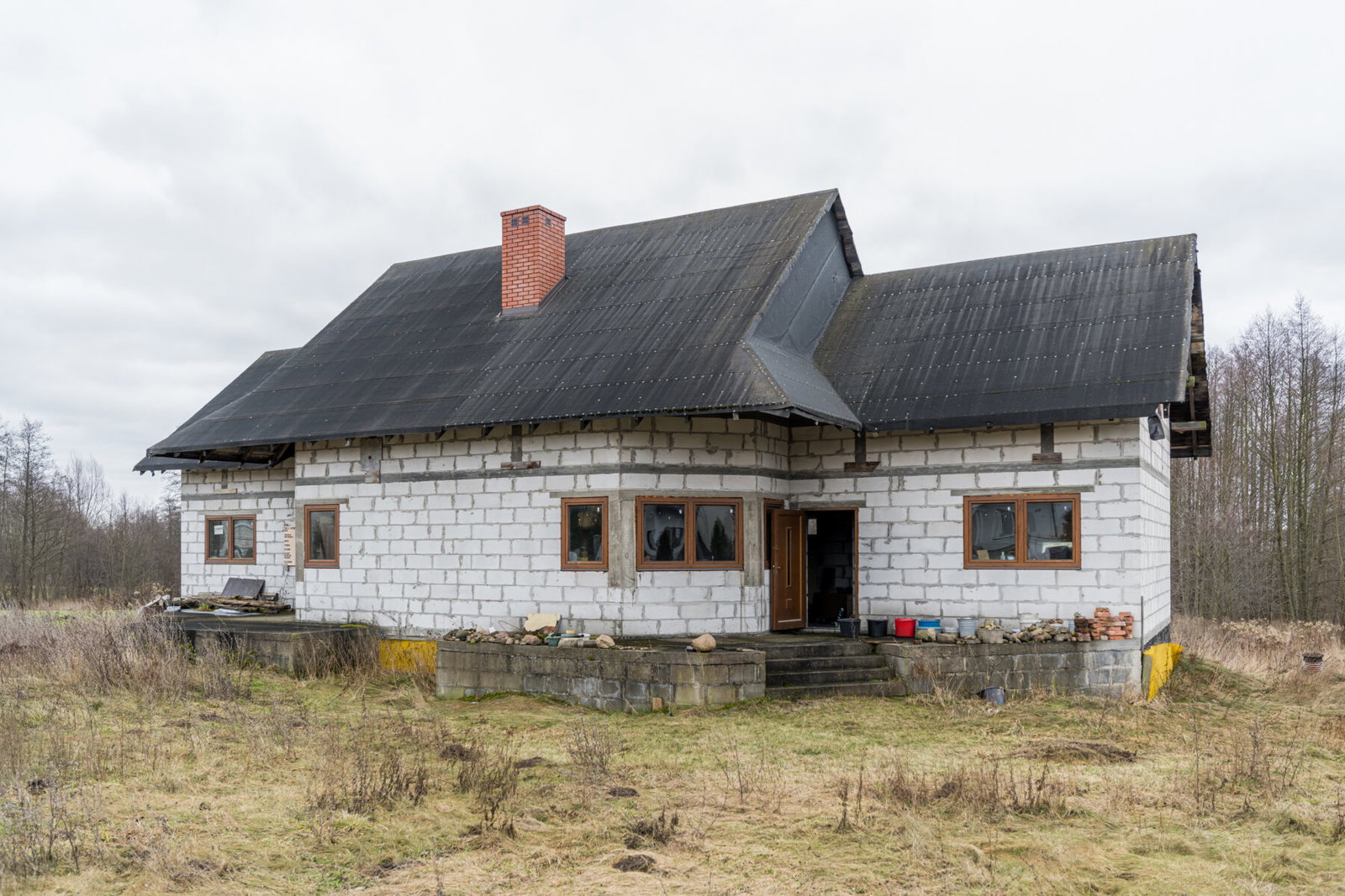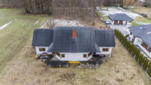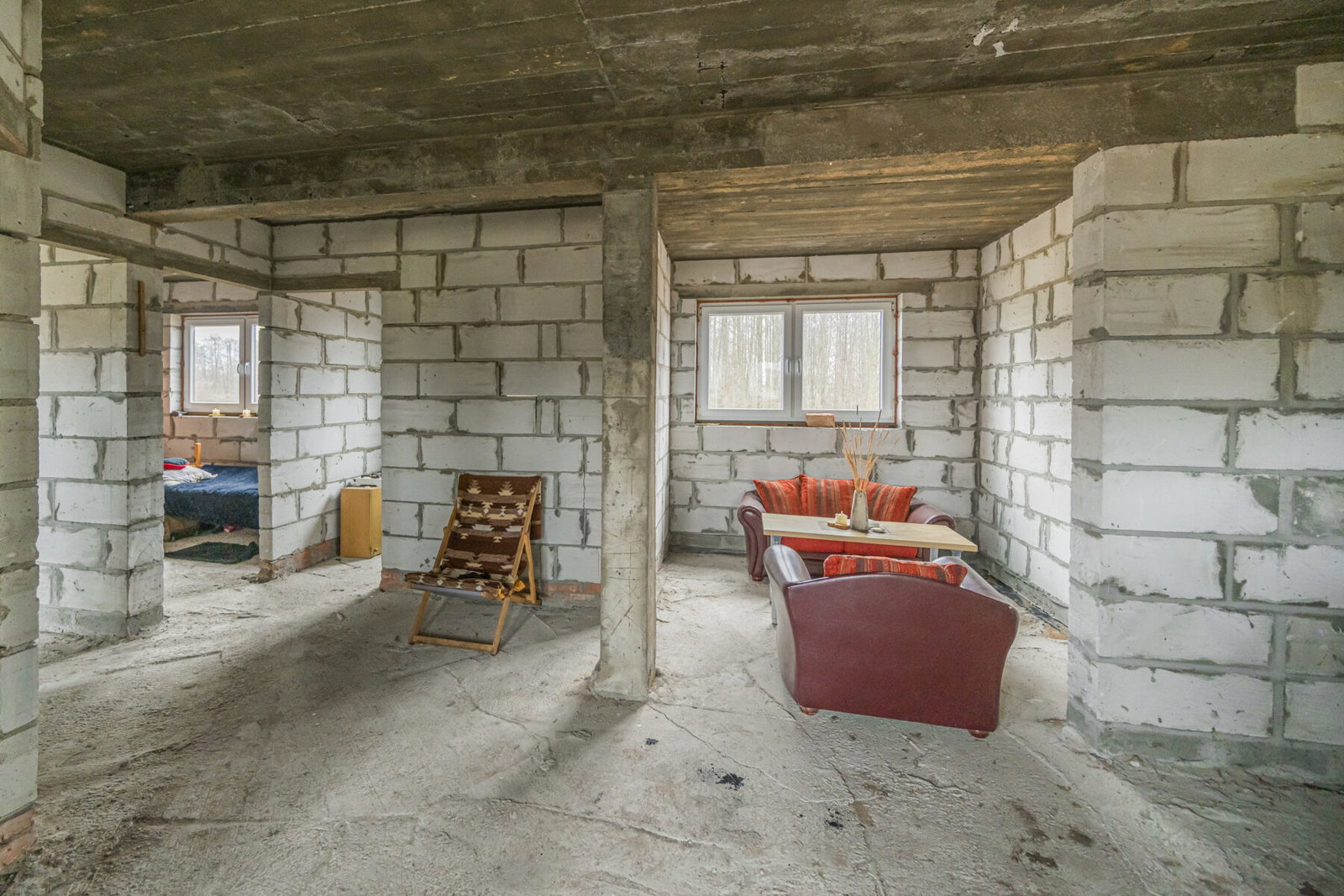 Budynek jest w stanie surowym zamkniętym, co oznacza, że wymaga wykończenia wnętrz, ale konstrukcja jest solidna, co daje dużą swobodę w aranżacji.