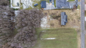 Działka o powierzchni 6424 m2 oferuje ogrom przestrzeni. Znajduje się na niej kawałek lasu dzięki czemu zyskujemy