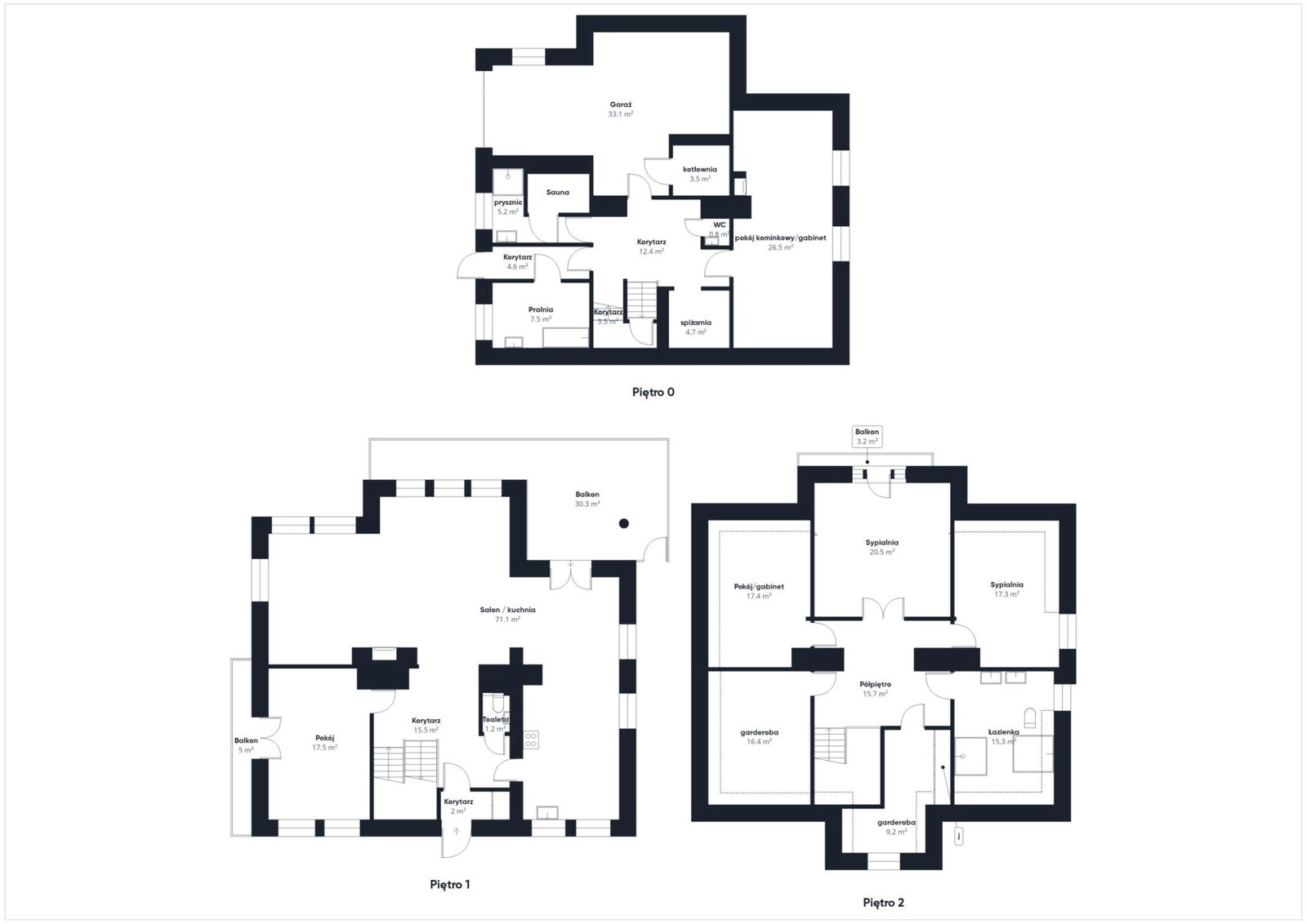 Dom piętrowy posiada 6 pokoi a dodatkowo garderoby, saunę i pomieszczenia gospodarcze !