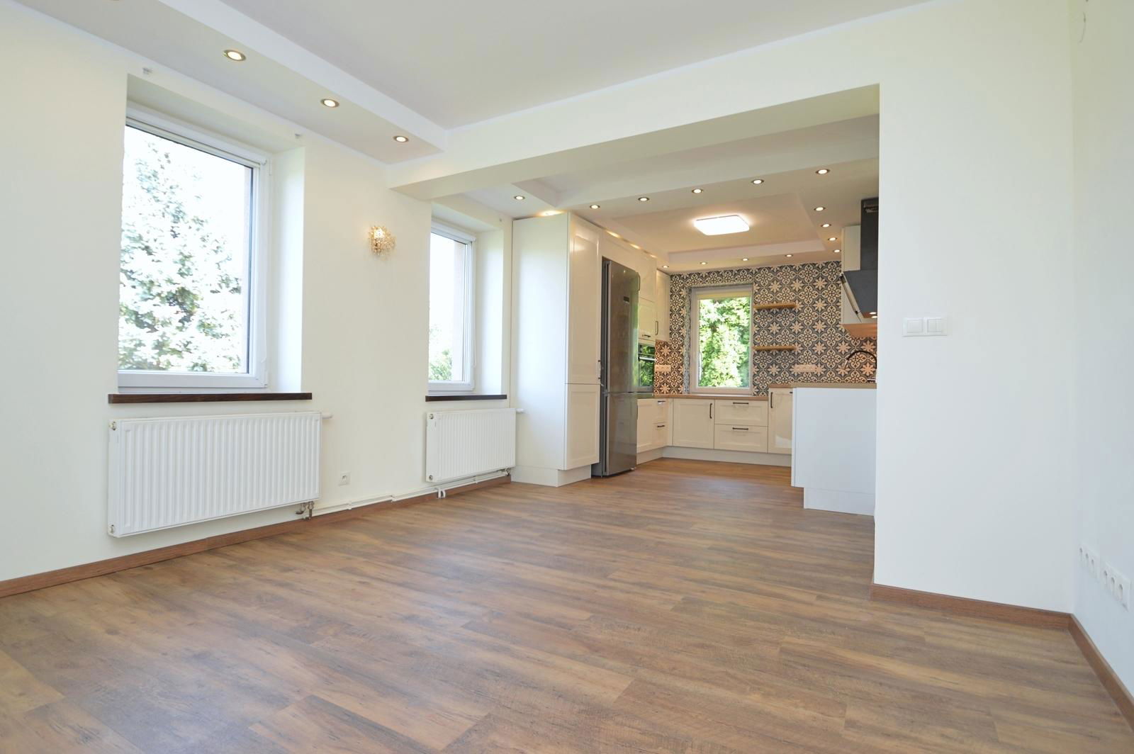 Dom jest po kompleksowym remoncie i gotowy do wprowadzenia. Wykończony jest materiałami wysokiej jakości, a dodatkowo zamontowana jest klimatyzacja, co zwiększa komfort mieszkania.