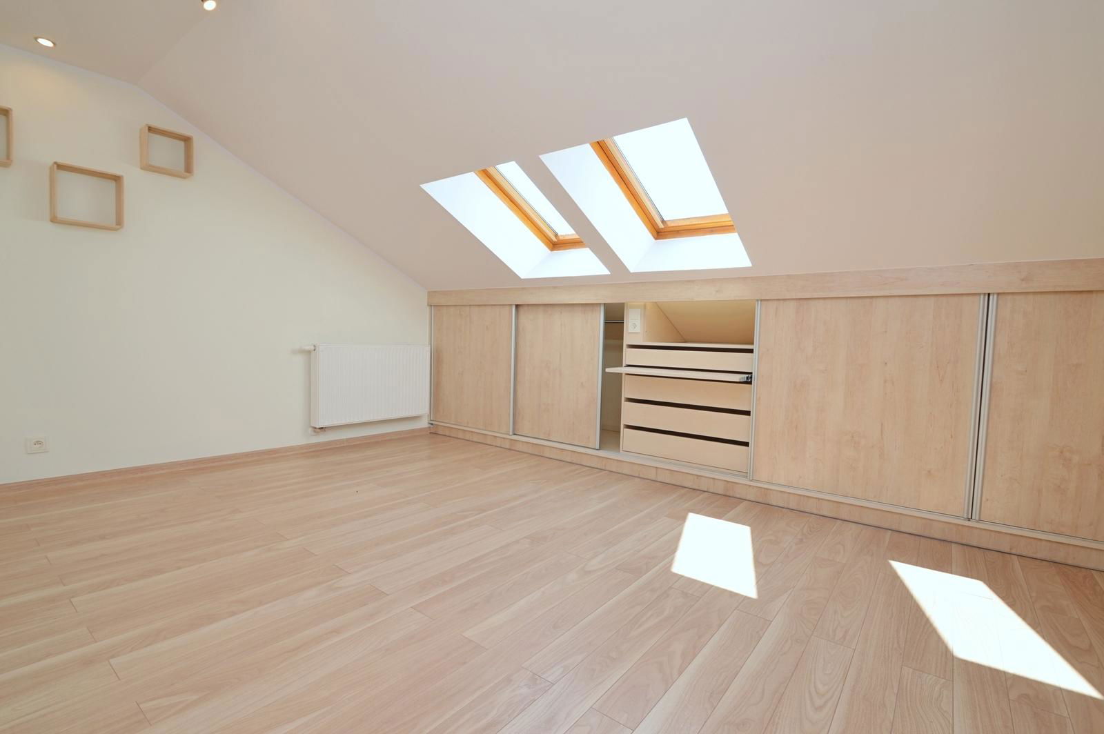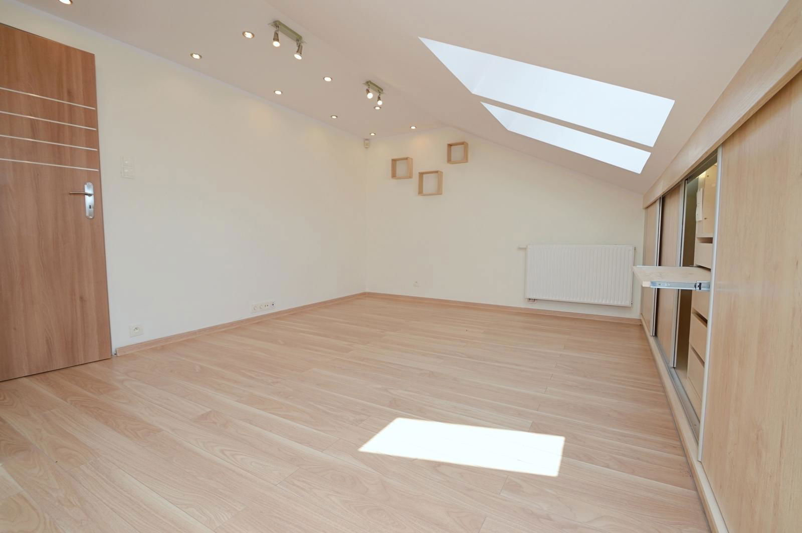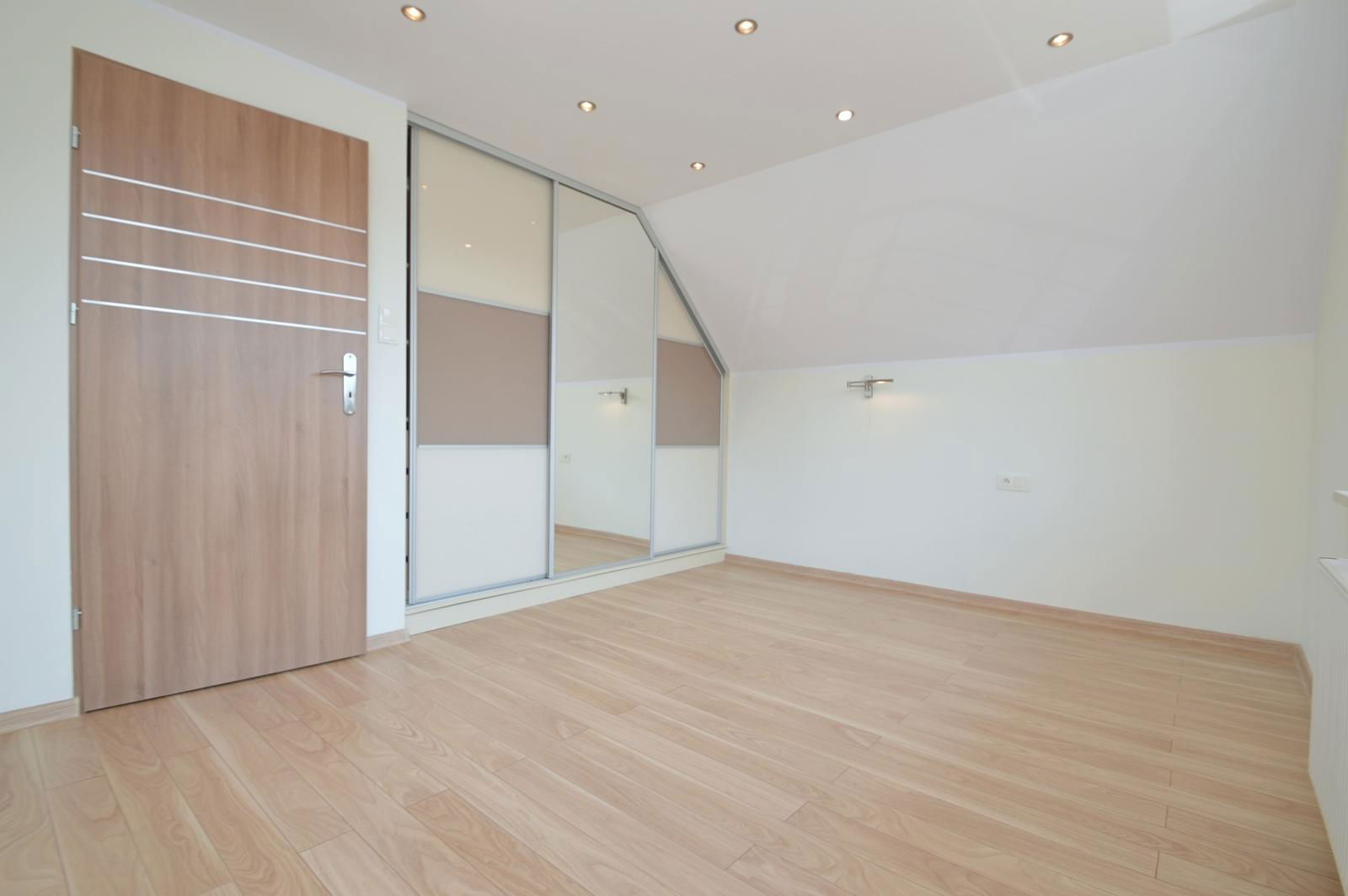 Na piętrze budynku znajdują się przestronna sypialnia z łazienką oraz dwa pokoje z zabudowanymi szafami bardzo dobrej marki. Na tym poziomie mieści się również łazienka z wanną i miejscem na pralkę.