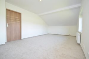 Dom ma 7 pokoi, w tym przestronną sypialnię z łazienką oraz dwa dodatkowe pokoje z zabudowanymi szafami. Na parterze znajduje się otwarta kuchnia połączona z salonem/jadalnią, a także łazienka z prysznicem i pomieszczenie idealne na biuro.