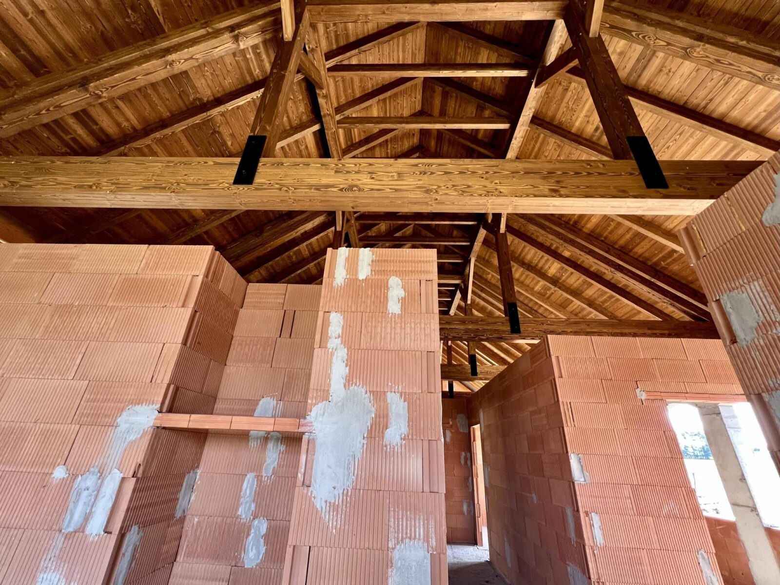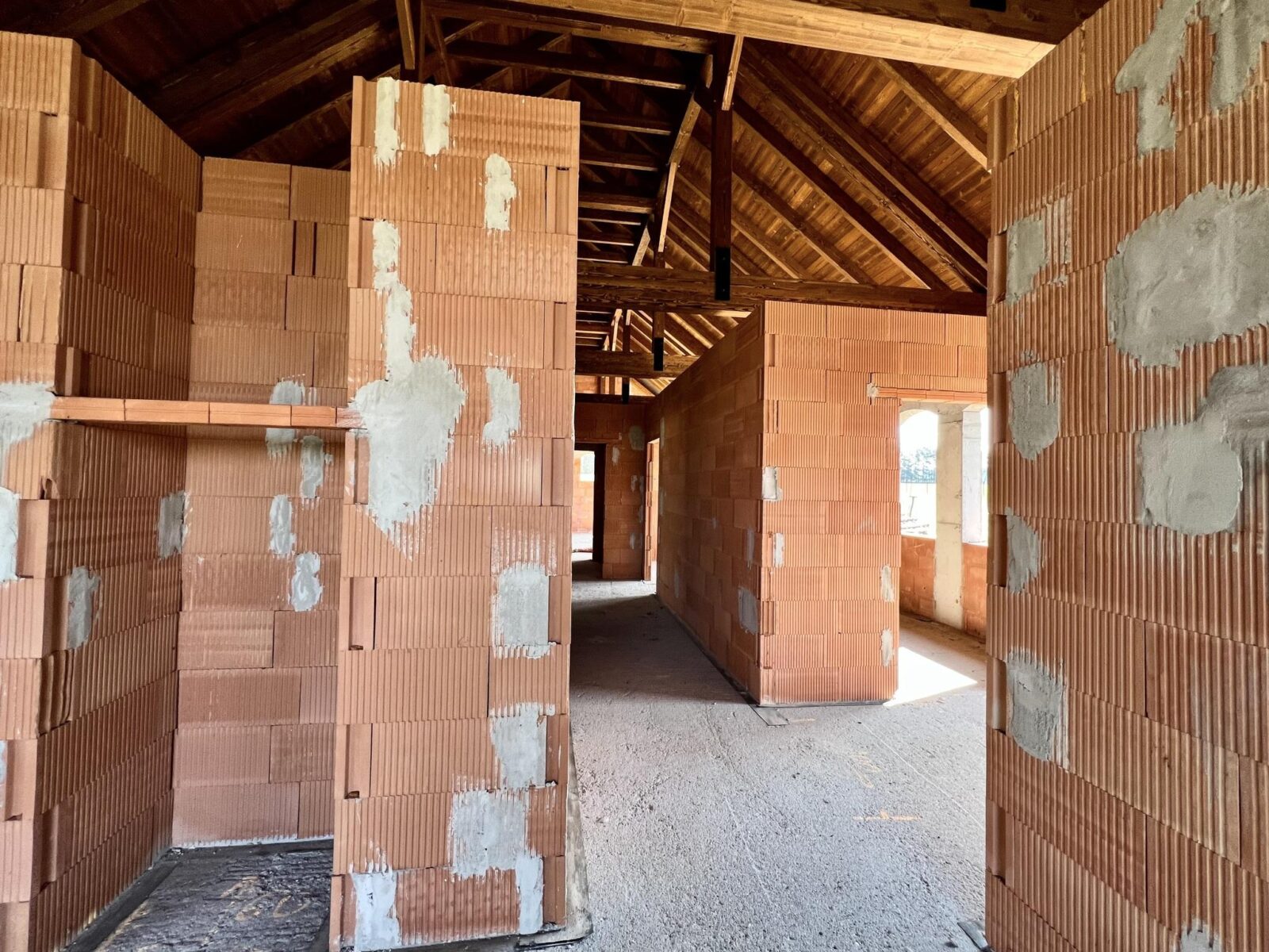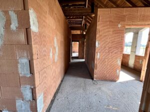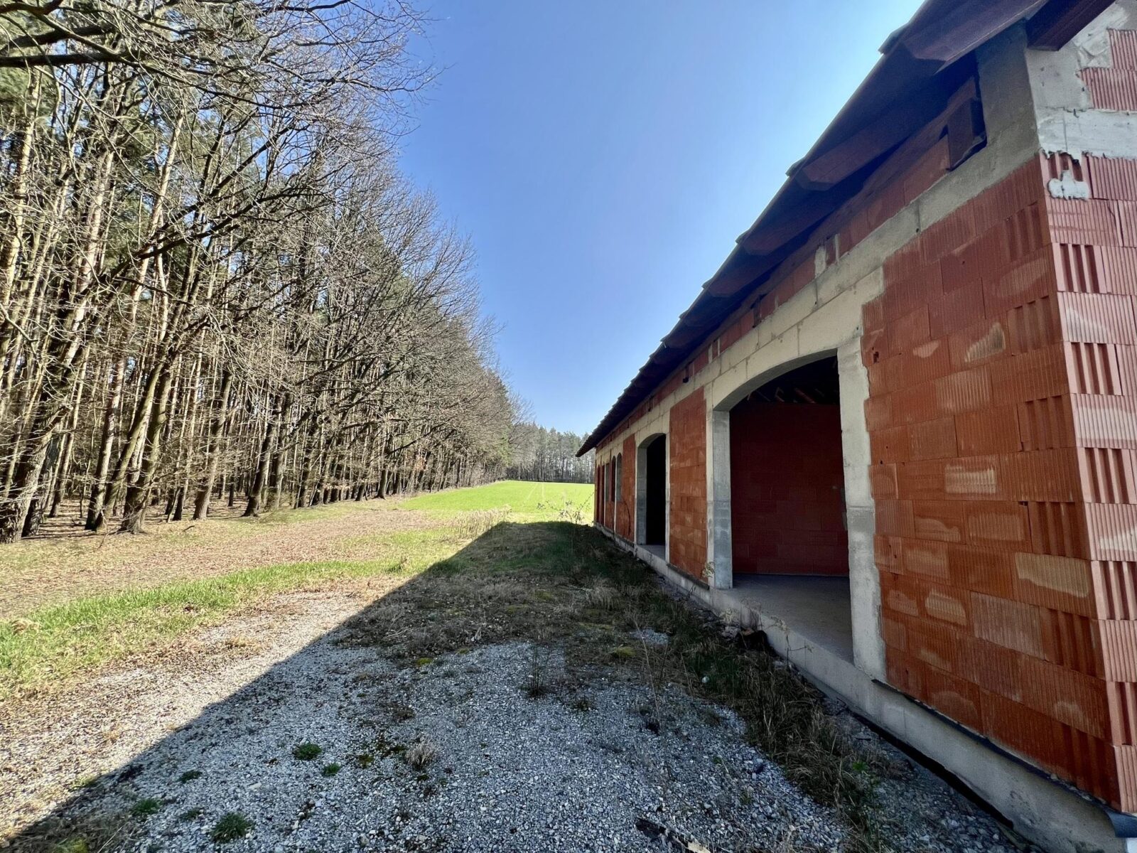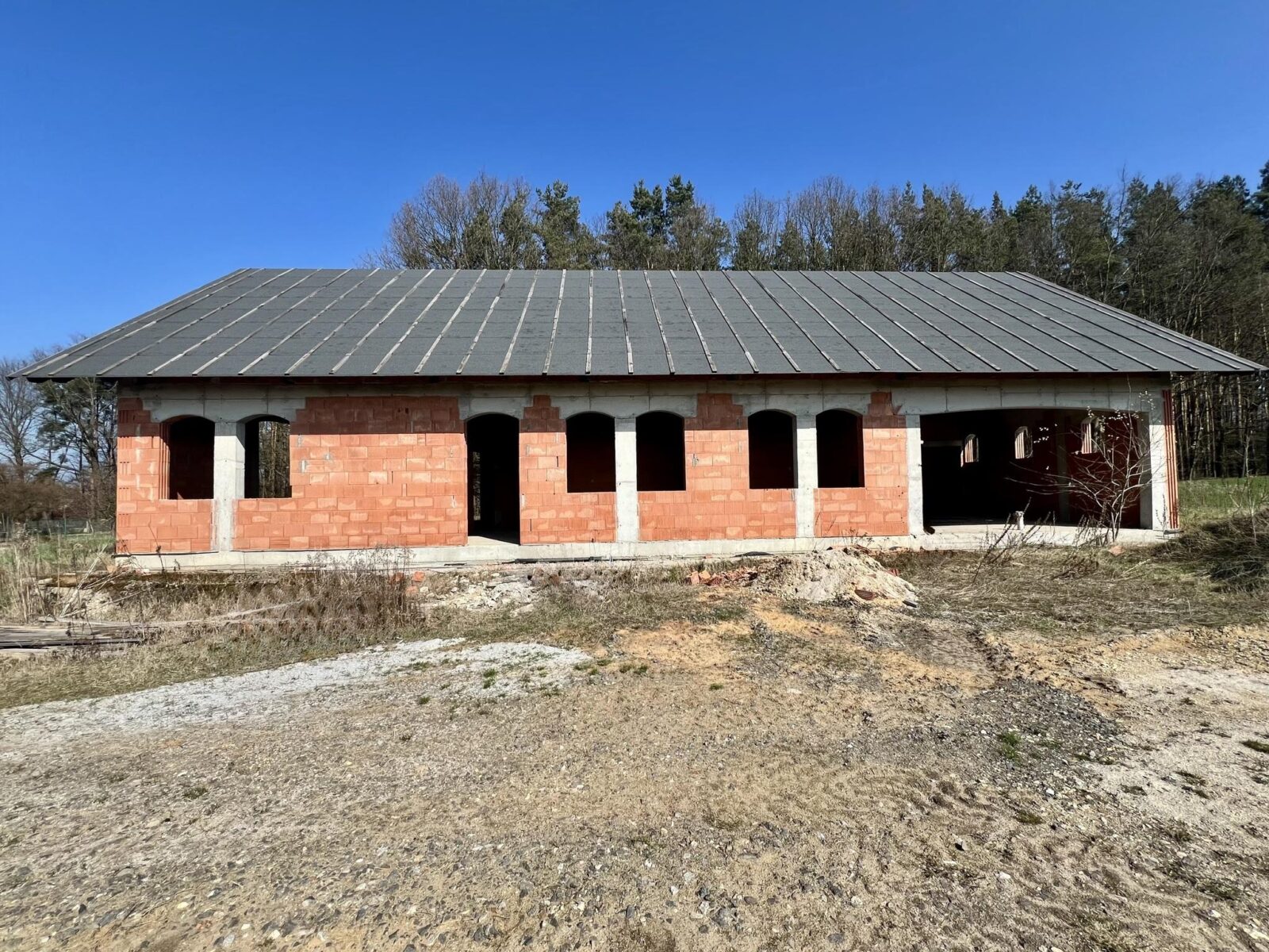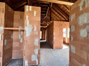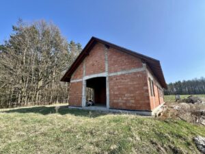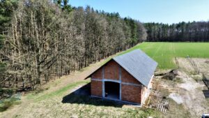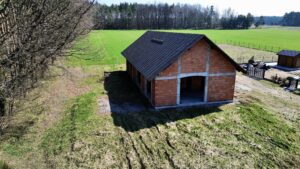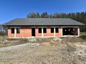 Dom znajduje się w stanie surowym otwartym, co daje nowym właścicielom pełną swobodę w projektowaniu wnętrz według własnych potrzeb – wszystkie ściany działowe wewnątrz są ruchome! Budynek został wzniesiony z pustaka i posiada deskowany dach, który nadaje mu wyjątkowego, naturalnego charakteru.