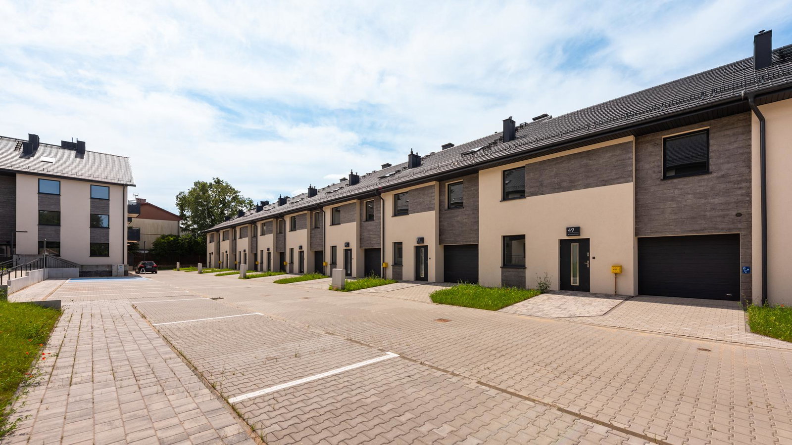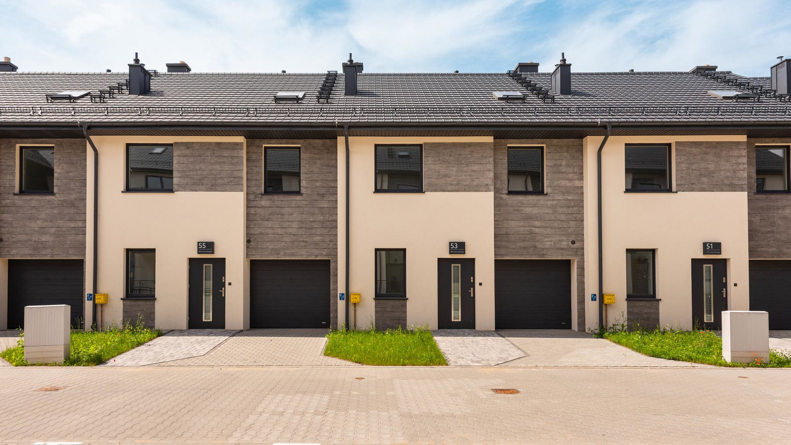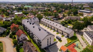 Nowe domy w zabudowie szeregowej w Pruszczu.