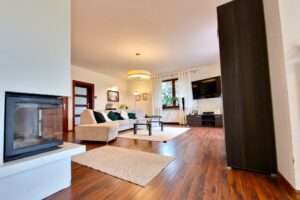 - Salon z wyjściem na taras – świetne miejsce na rodzinne spotkania