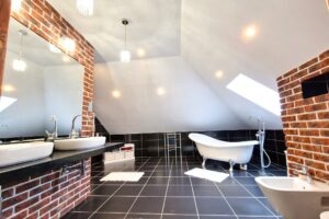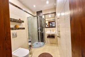 Łazienki – 10,1 m² (pow. podłogowa 20,79 m²) – wejście z garderoby i z korytarza