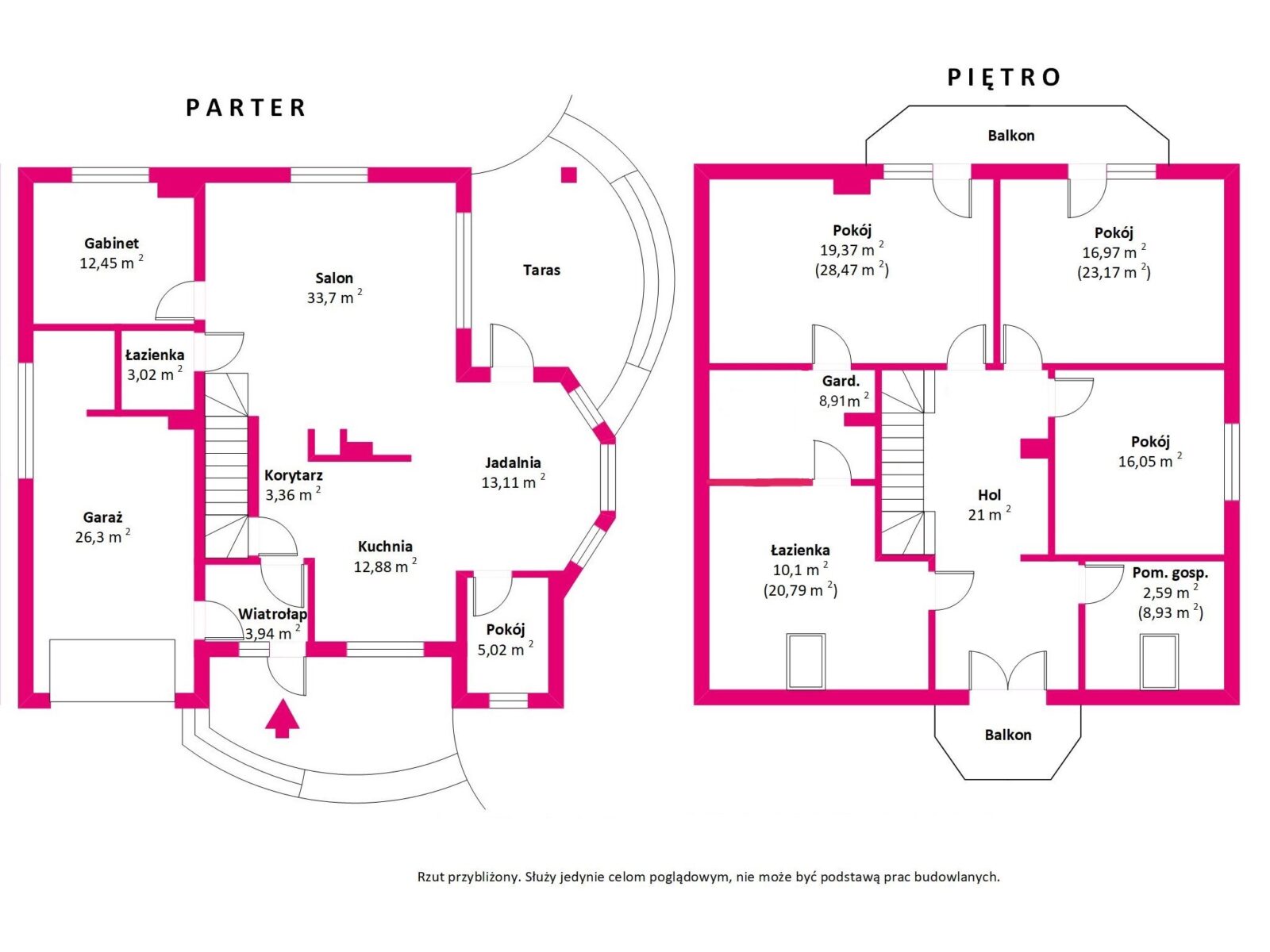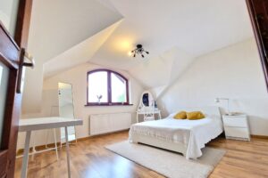 - Funkcjonalny układ pomieszczeń – łącznie 6 pokoi + garderoba + pom. gosp.
