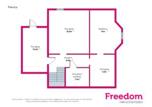 - Powierzchnie pokoi: 25,8+12,9+12,5+9,85+8,7