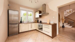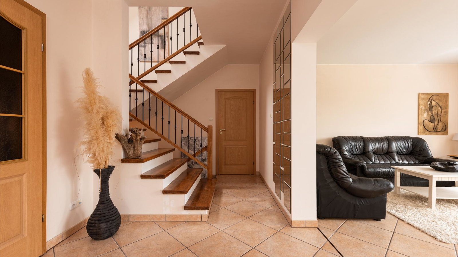 - Podłogi w pomieszczeniach: Panele, Terakota