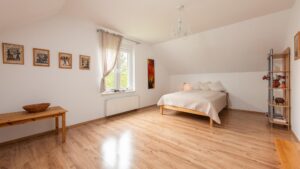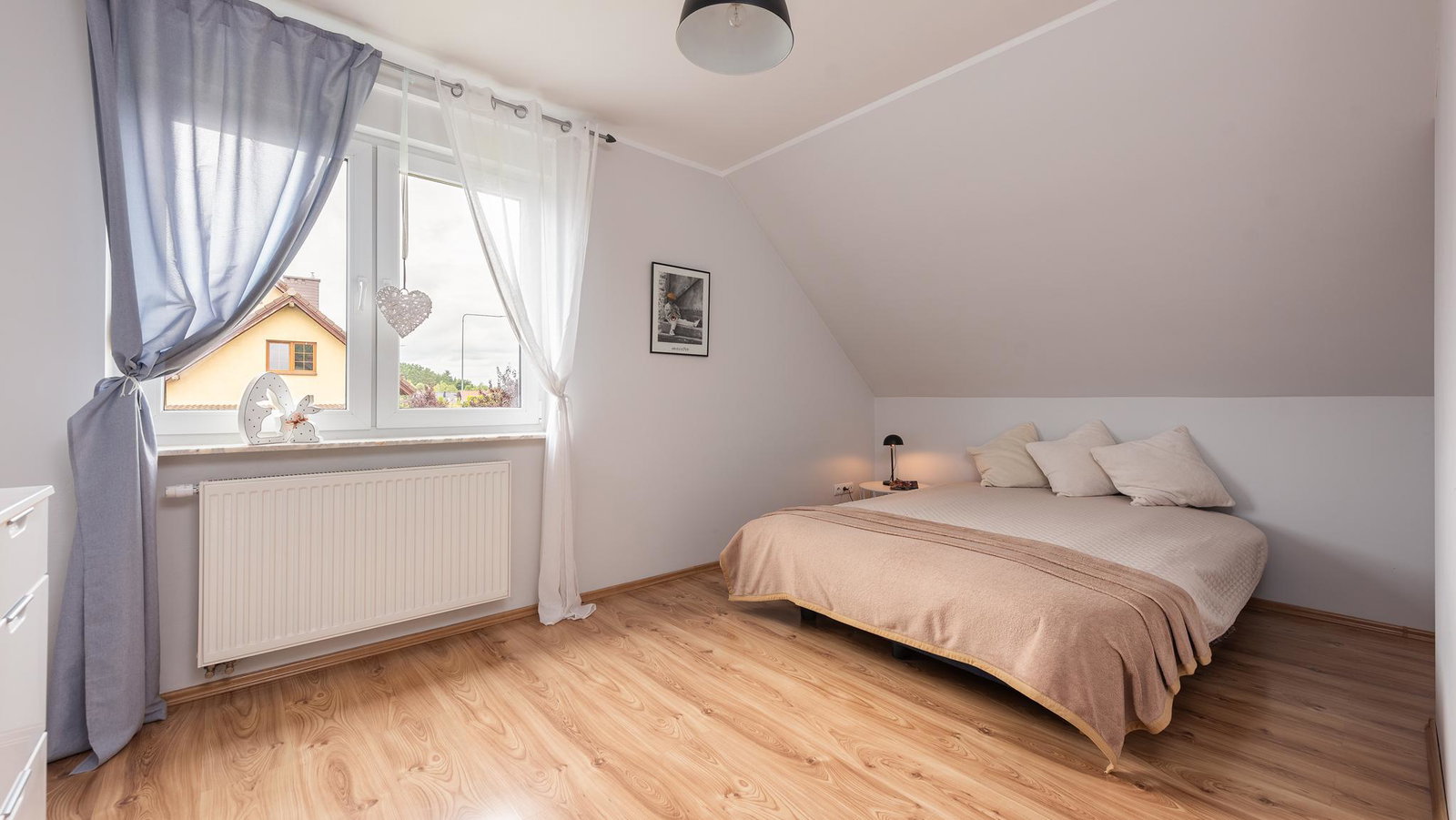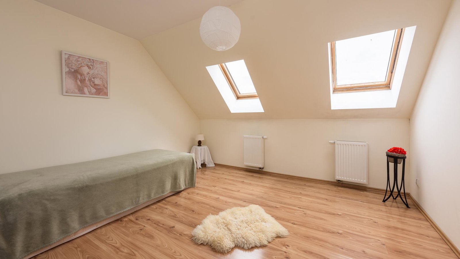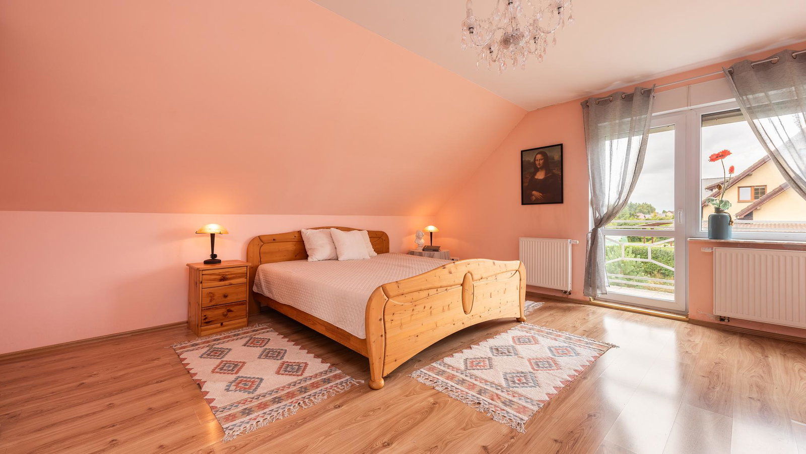 - 4 komfortowe sypialnie na poddaszu, w tym master bedroom z balkonem z widokiem na ogród i las.