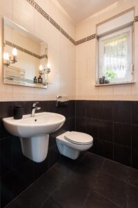 - 2 łazienki + dodatkowe WC, co daje komfort nawet dużej rodzinie.