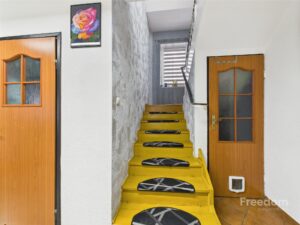 Ten bliźniak o powierzchni 169 m² usytuowany jest na imponującej działce o powierzchni aż 2077 m², której długi, prostokątny kształt prowadzi aż do malowniczo zadrzewionej części ogrodu – idealnej na odpoczynek, rekreację lub stworzenie własnej zielonej oazy.