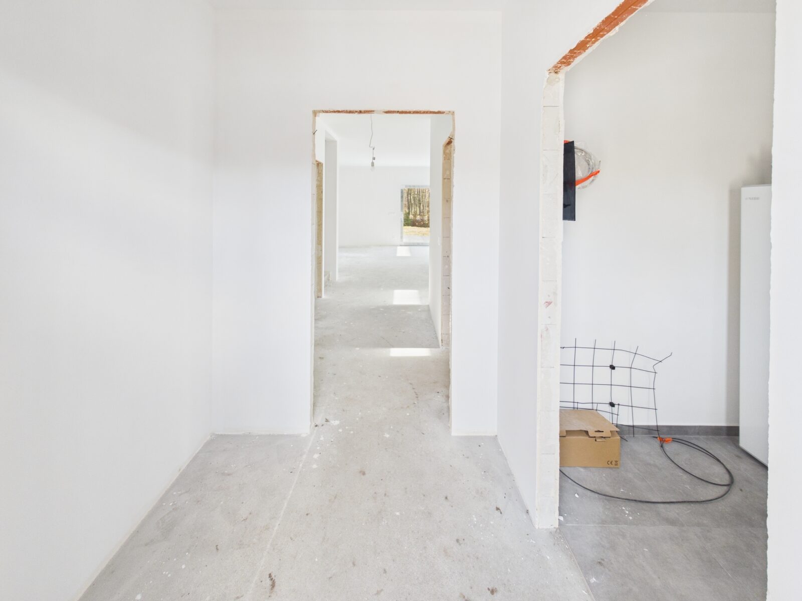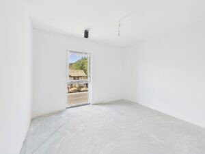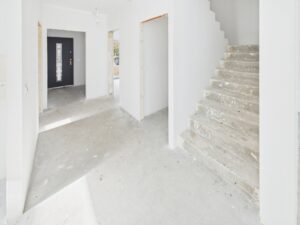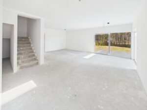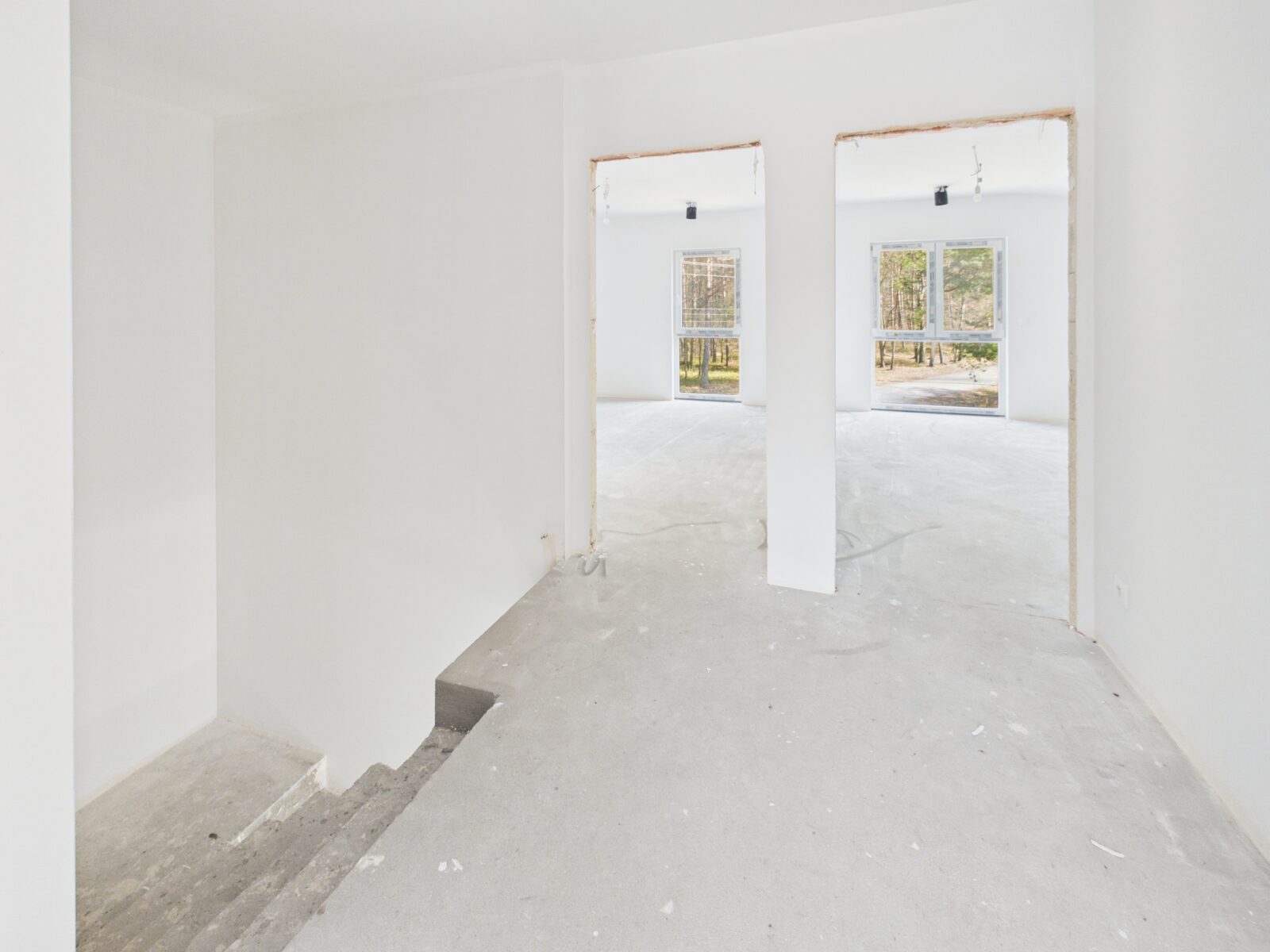 Dom jest w stanie deweloperskim, co oznacza, że jest gotowy do wykończenia według własnych upodobań. Dzięki nowoczesnym technologiom, takim jak pompa ciepła i instalacja fotowoltaiczna, nie wymaga dodatkowych inwestycji w energooszczędność.