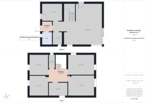 Dom ma nowoczesny układ z pięcioma sypialniami, przestronnym salonem z aneksem kuchennym oraz dodatkowym pokojem, który idealnie nadaje się na gabinet. Na piętrze znajdują się cztery ustawne sypialnie oraz duża łazienka.