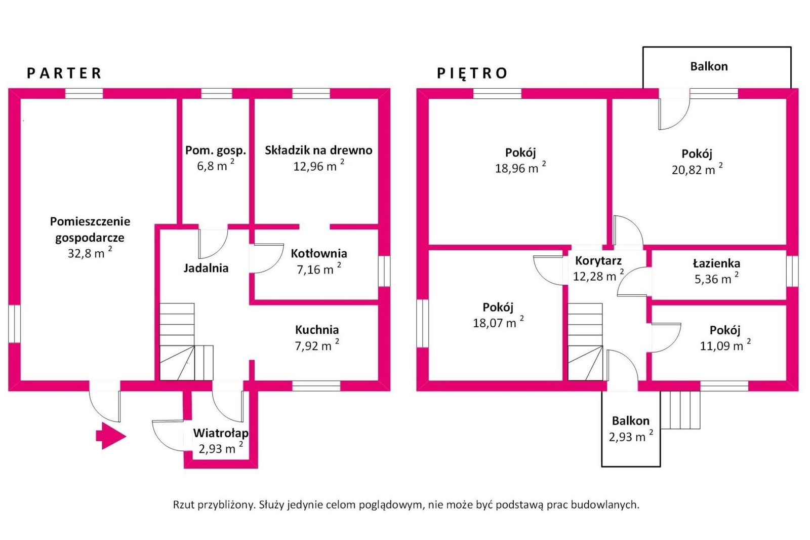 Dom ma powierzchnię użytkową około 115 m² i składa się z czterech pokoi, kuchni z jadalnią, łazienki oraz dodatkowych pomieszczeń gospodarczych. Na parterze znajduje się także wiatrołap oraz kotłownia. Dodatkowo, dom ma balkon oraz przestronny ogród, co czyni go idealnym miejscem dla rodziny.
